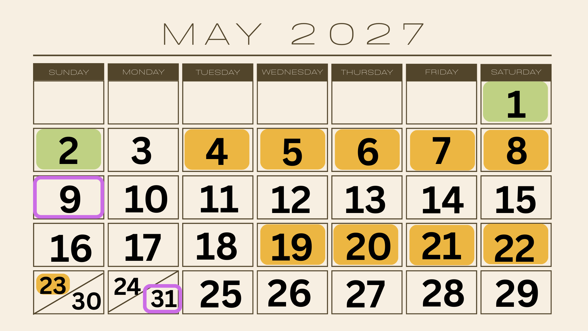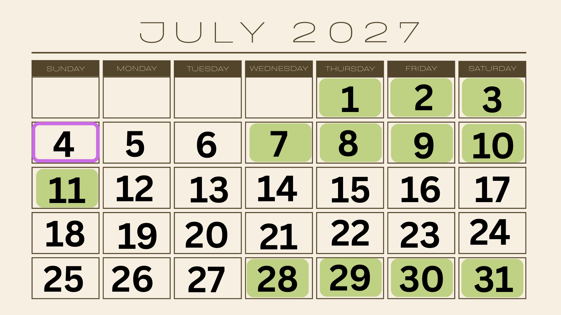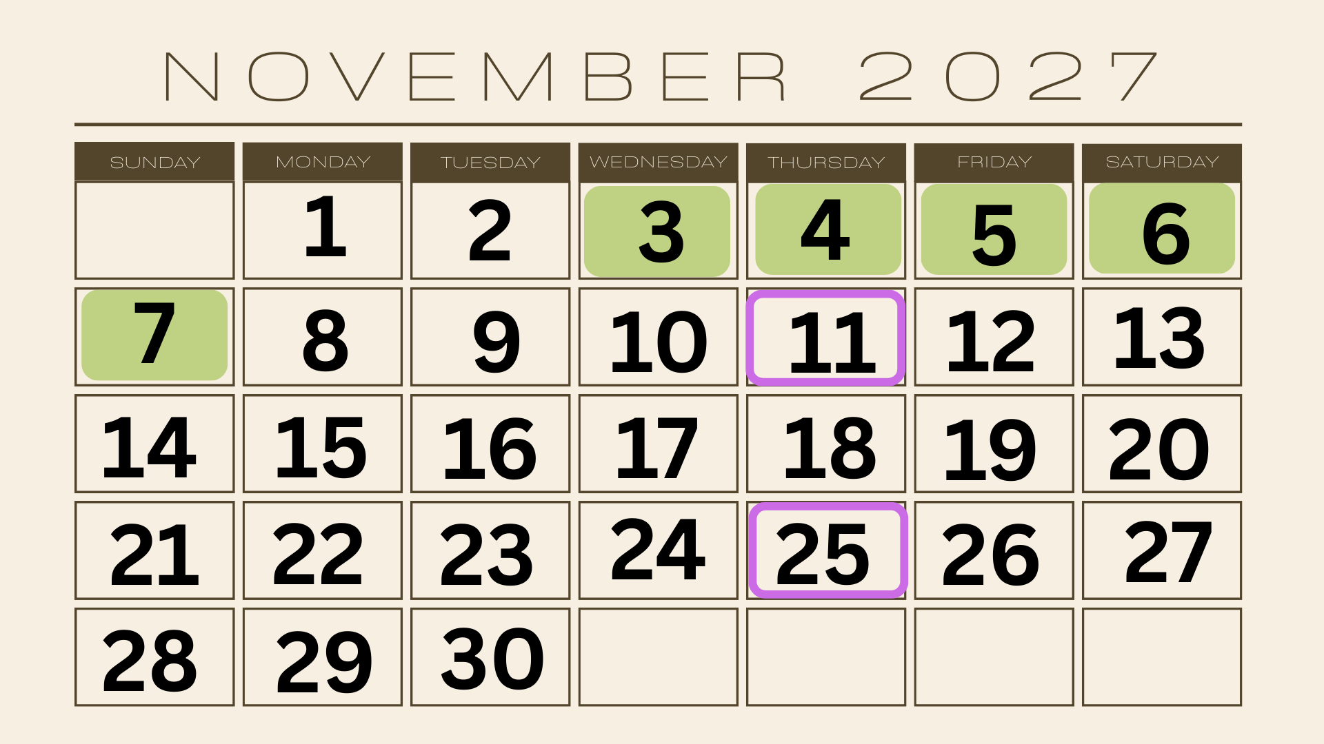This calendar shows: