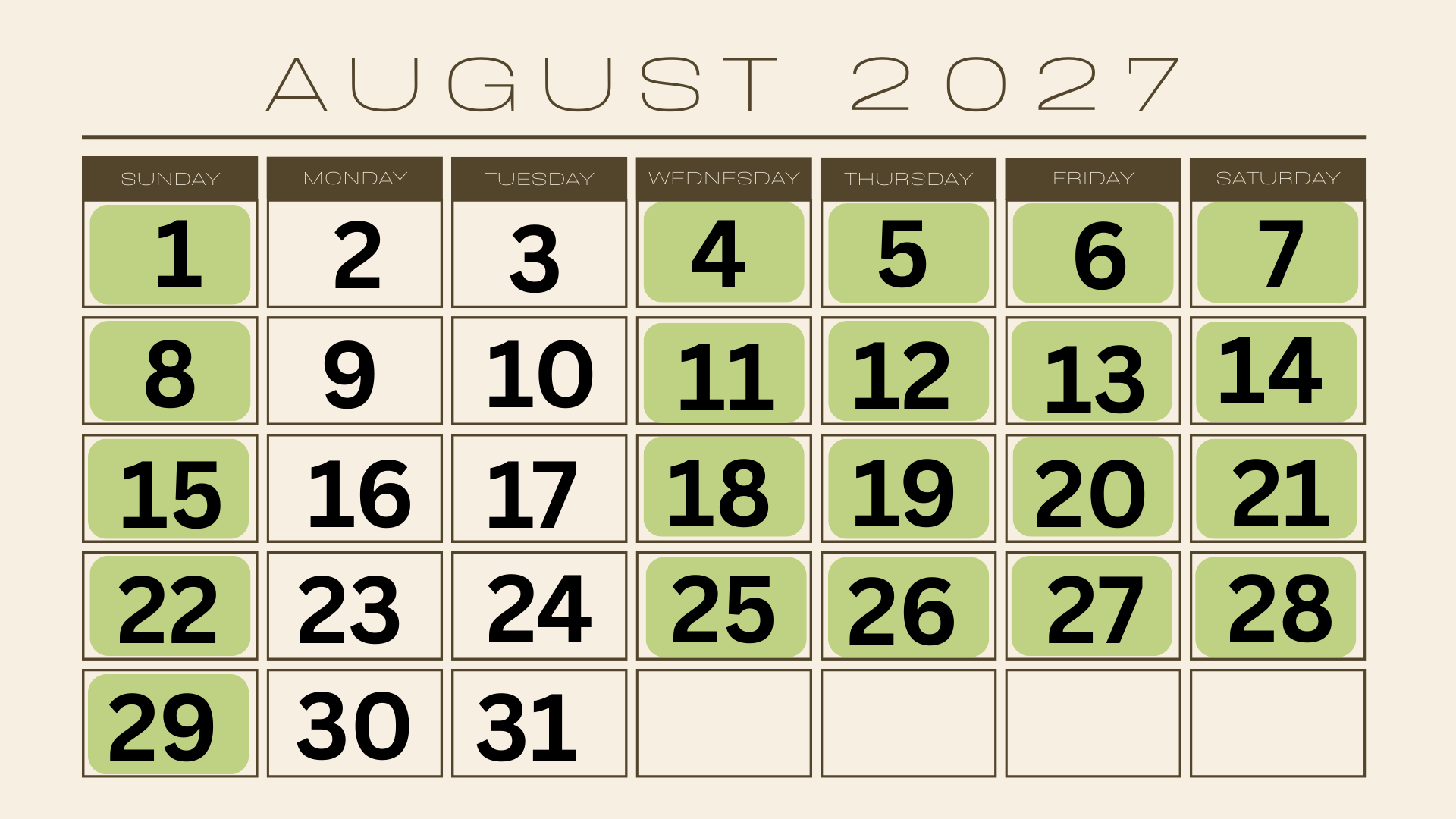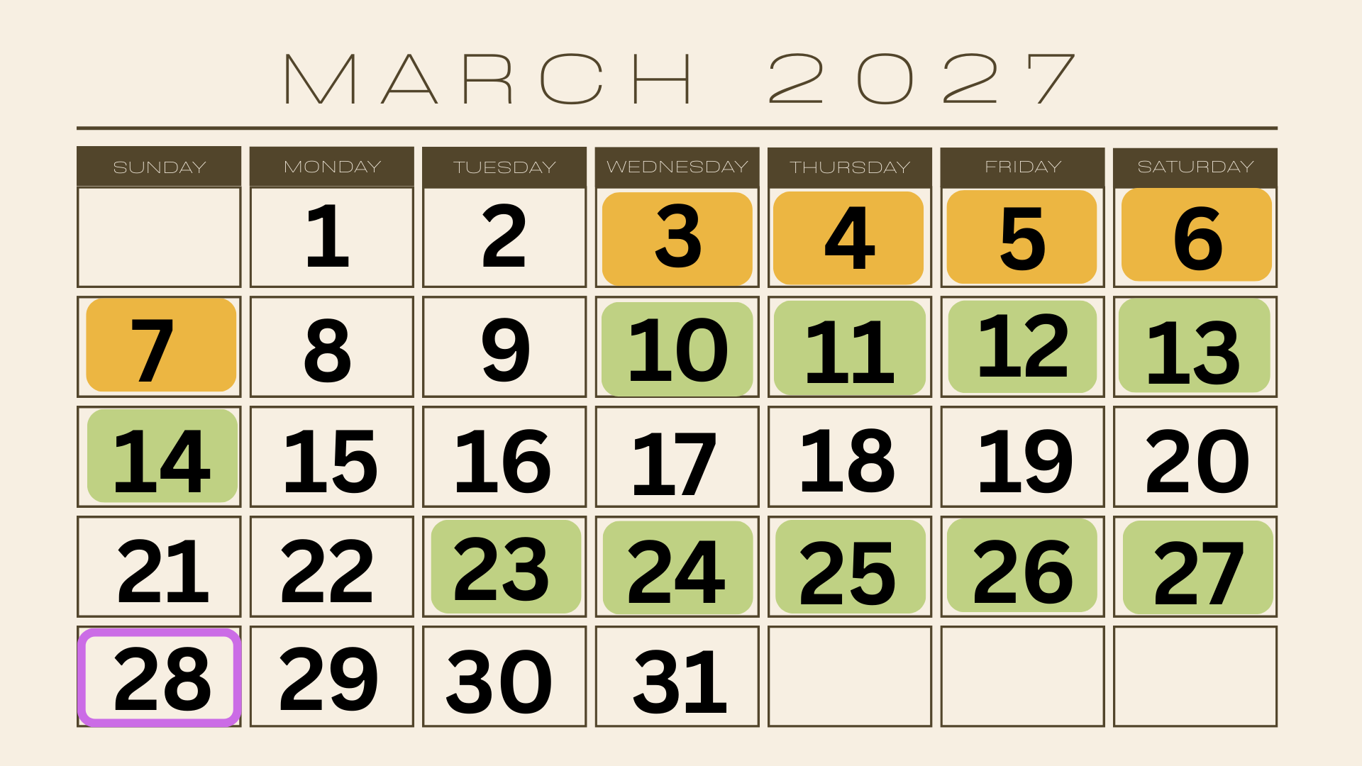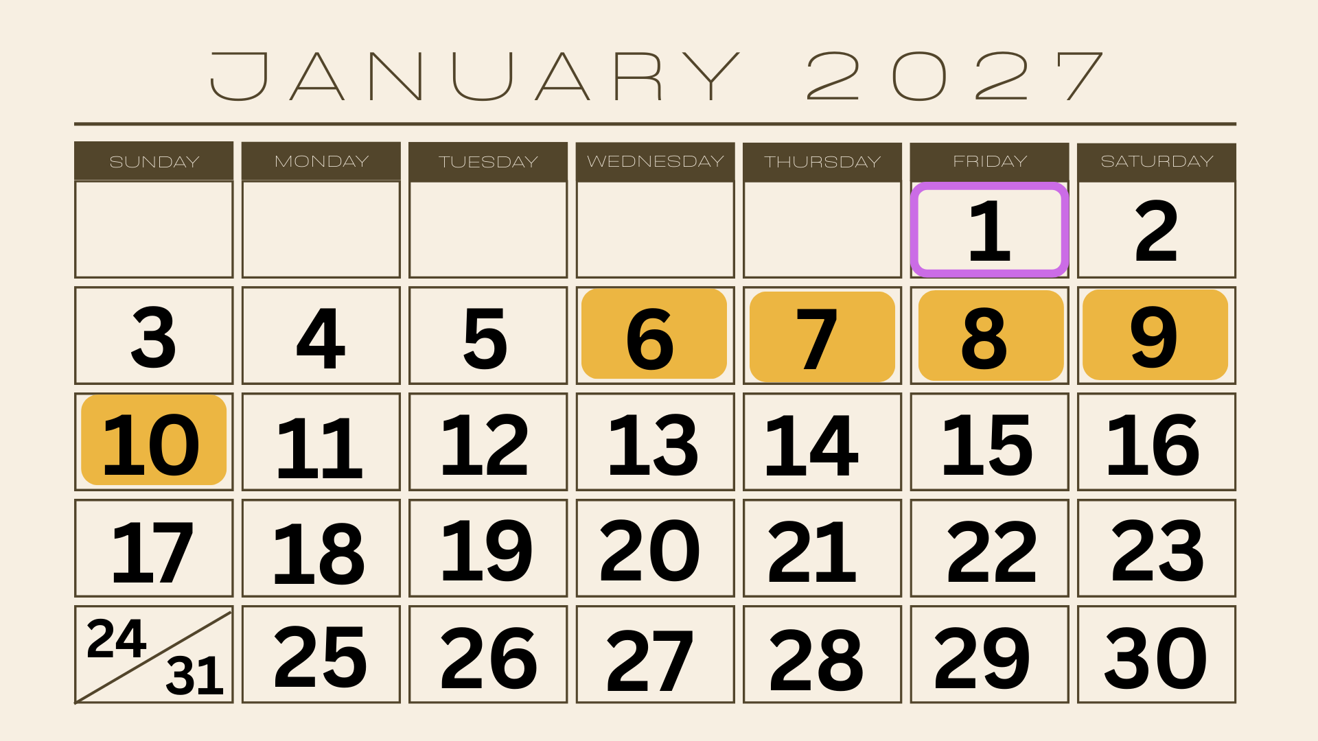 This calendar shows:
